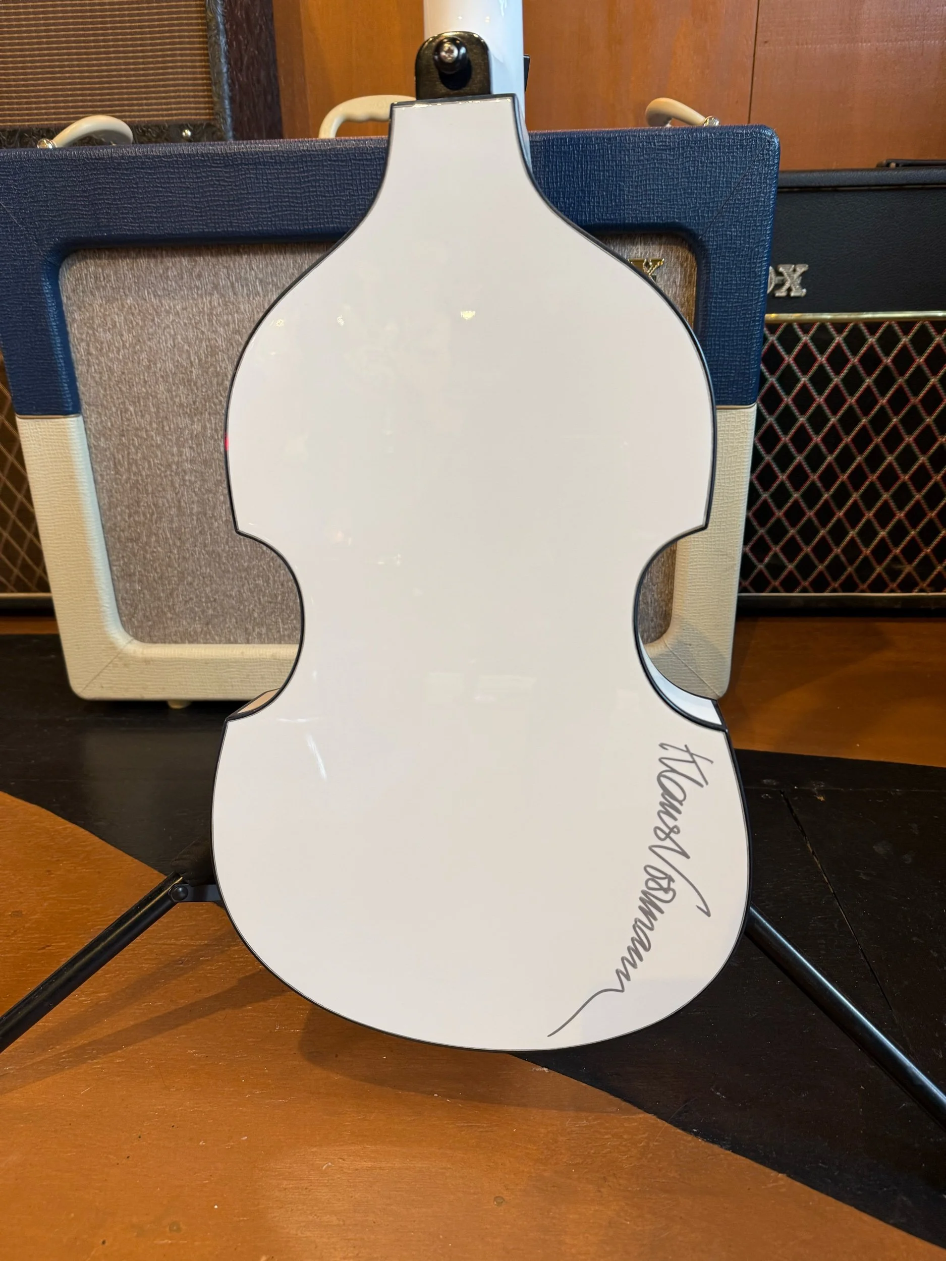 This bass is one of only six to be signed by Klaus Voormann on the back of the bass.