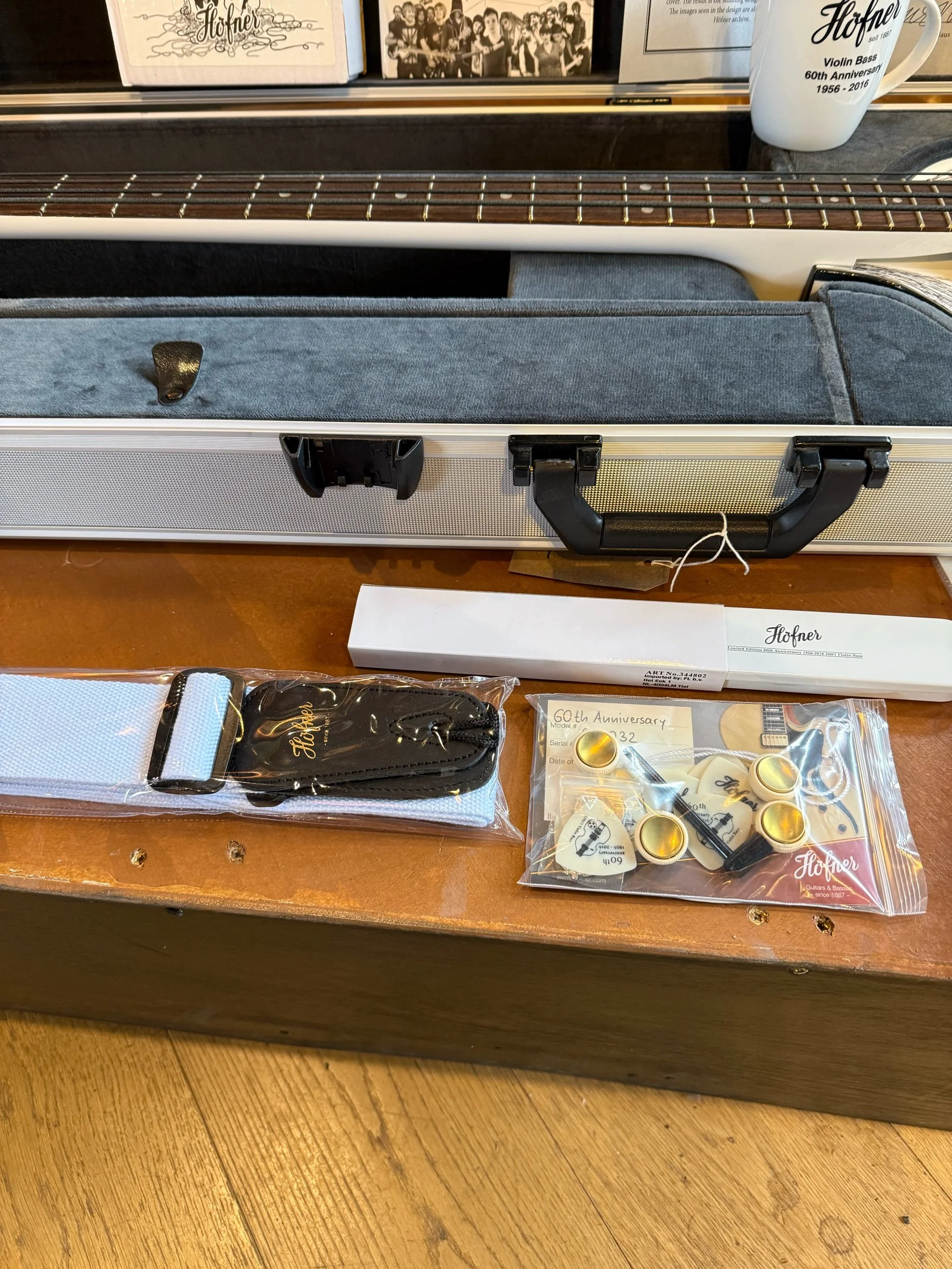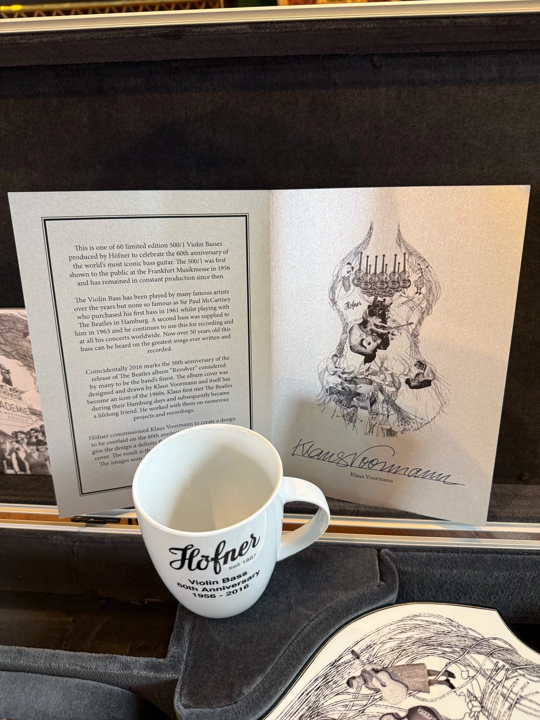 Extremely rare unplayed Hofner 60th Anniversary Violin bass #39/60 signed by Klaus Voormann.