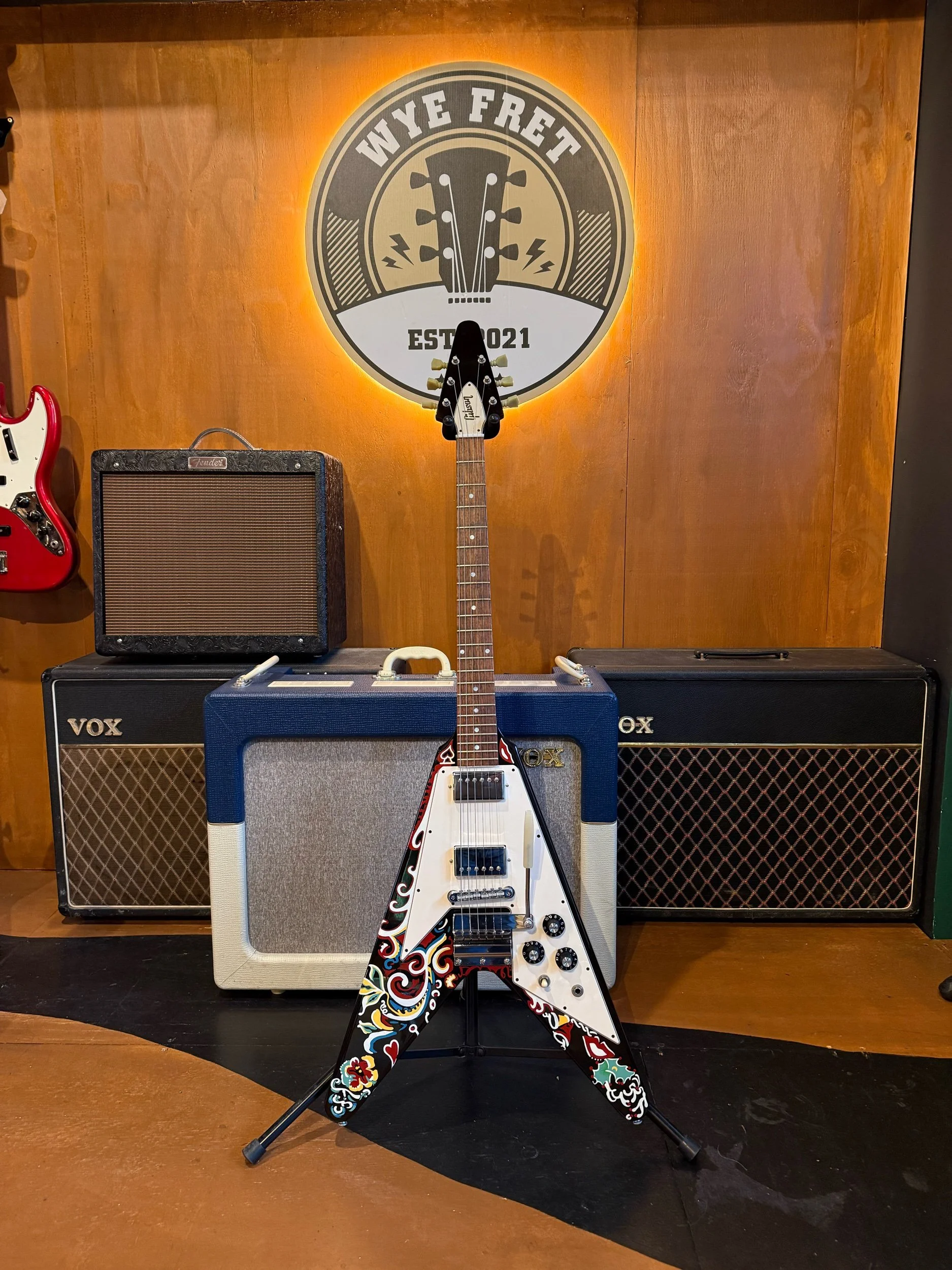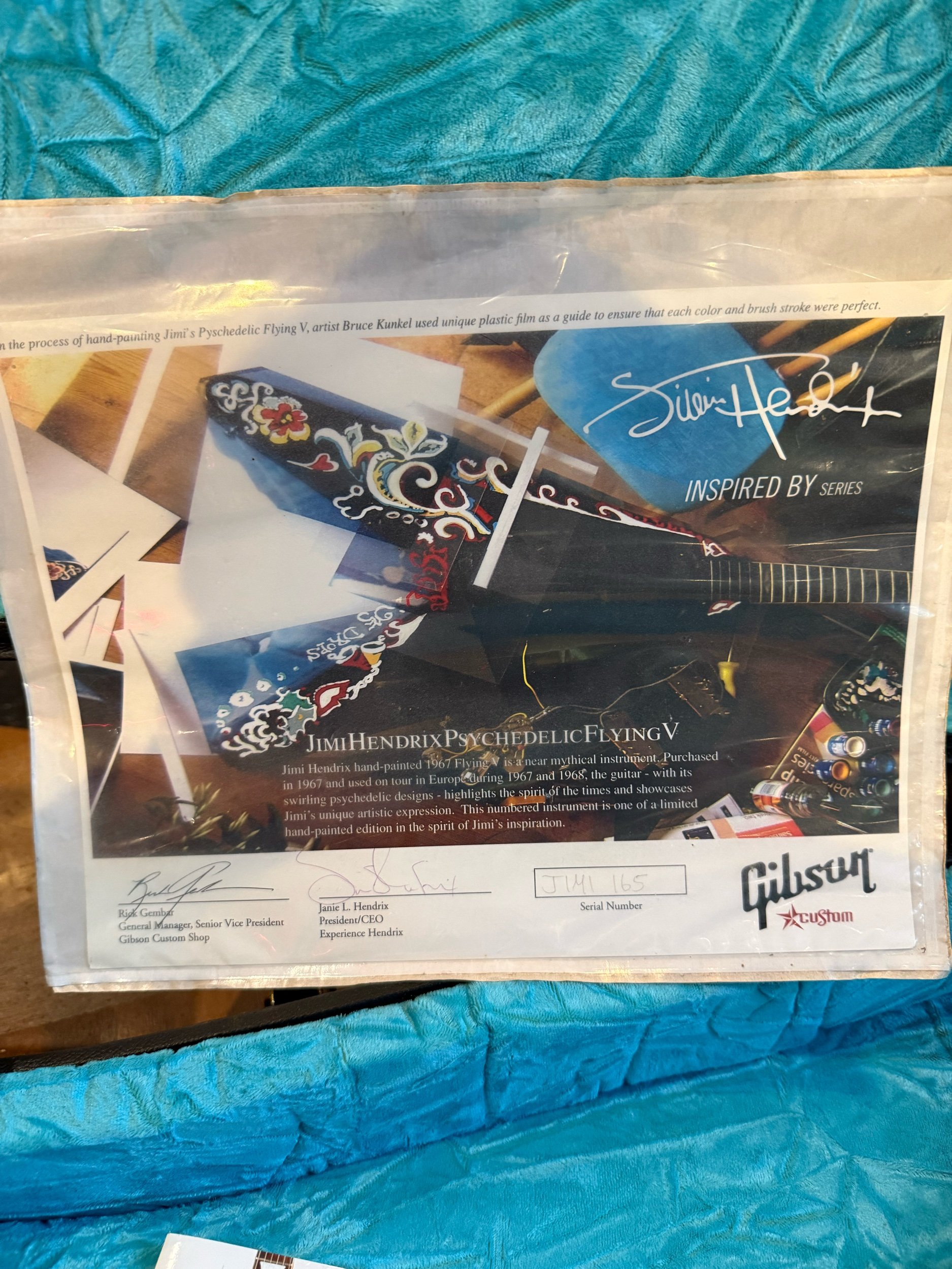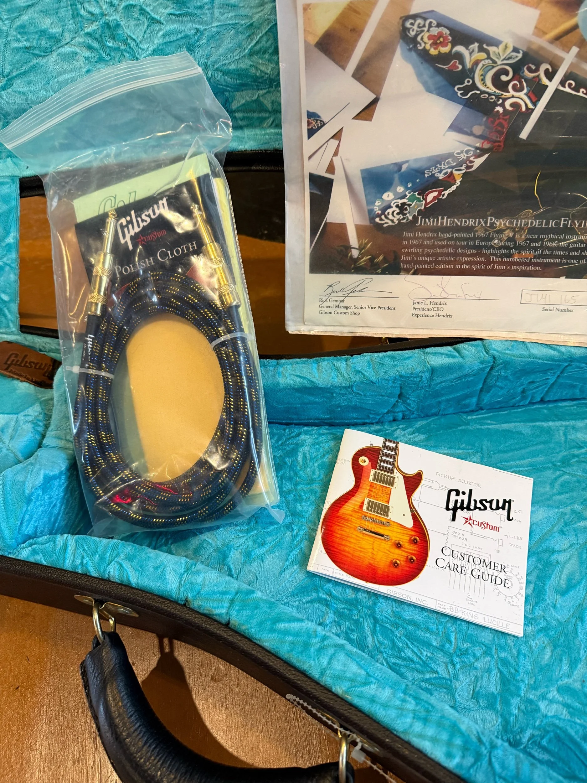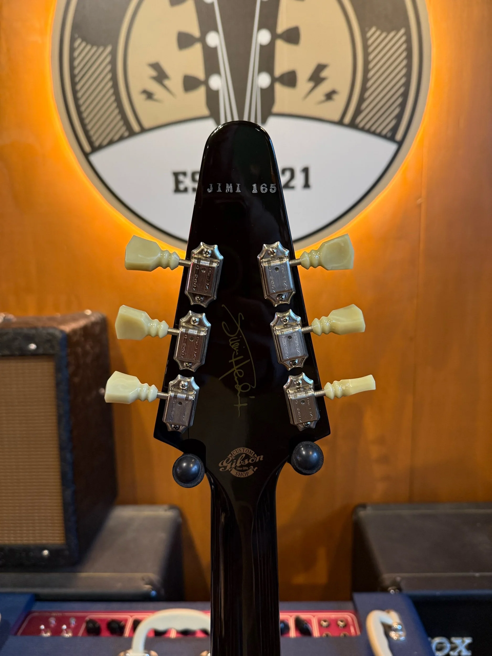 This is Gibson Custom shops nod to the original 1967 Flying V that he used during his European tours from 1967 to 1698, with its psychedelic pattern painted by himself. The guitar went by the name "Love Drops" and is still attracting a lot of attention from fans to this day!